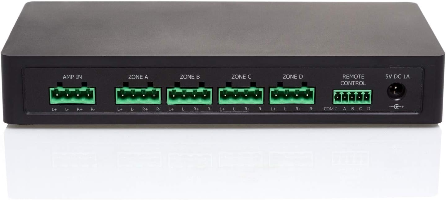 - Compatible with 8Ω speakers and provides a simple solution for multi‑zone setups in a single room or small home.